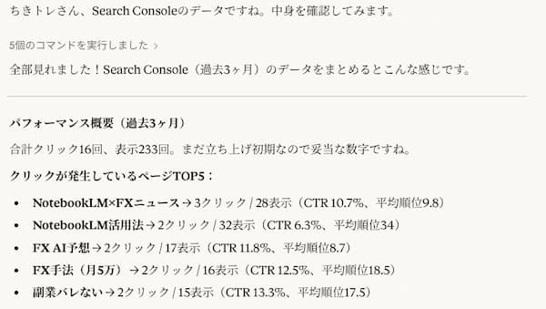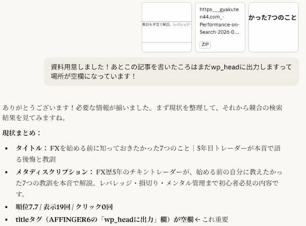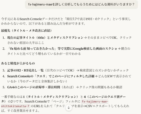 - サーチコンソールのデータをClaudeに読ませれば、リライト方針が3分で決まる
