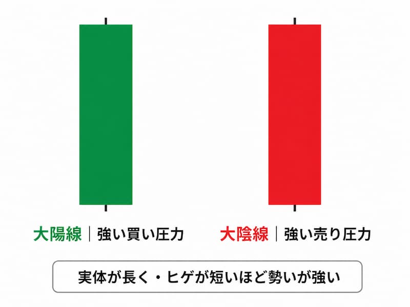 大陽線・大陰線|強い勢いのサイン