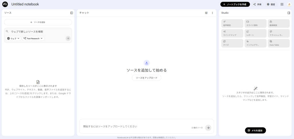 ここからは、NotebookLMを使ったことがない人向けに基本から説明します。