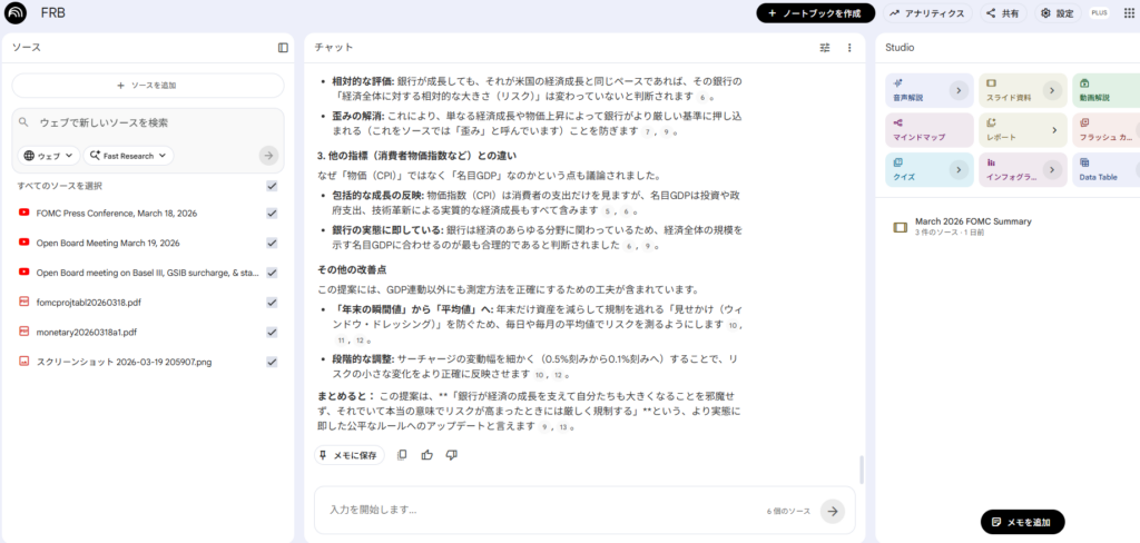 正直、英語はそこまで得意じゃないです。でもNotebookLMが要約してくれるから問題なし。むしろ中途半端に日本語のニュースだけ追いかけてた頃より、今のほうがずっと正確に情報をつかめてます。